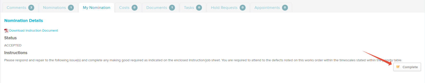When works for an accepted nomination have been carried out, the nomination will need to be completed.