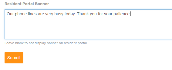 To add or edit a Banner, navigate to Admin > Your Account > Edit > Resident Portal Banner.
