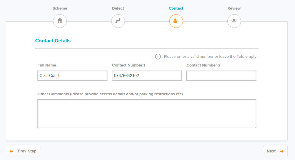 Step 1: When creating a Defect, enter a valid number in the Contact Number 1 field.